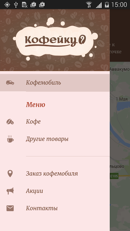 Кофемобиль — это мобильная кофейня. Наше приложение даст вам возможность заказать доставку кофе и узнать месторасположение нашего кофемобиля в городе Твери.