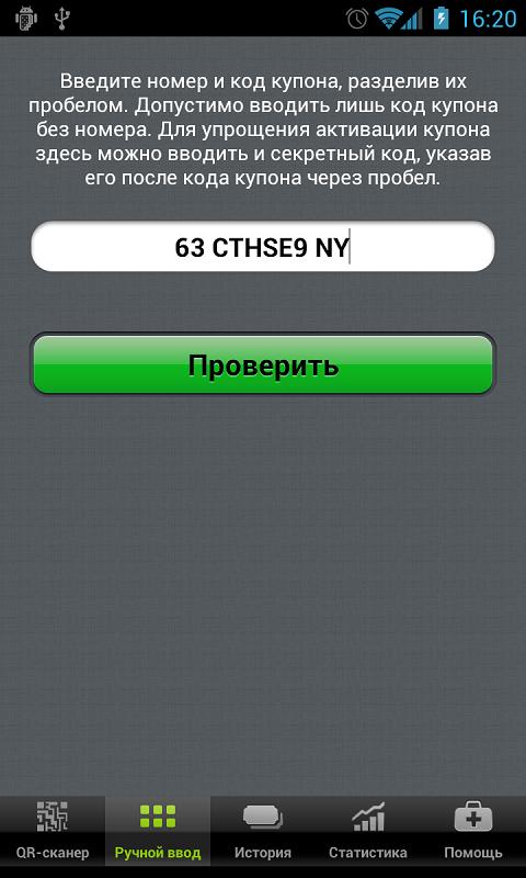- Ручной ввод кодов купонов и их автоматическая проверка