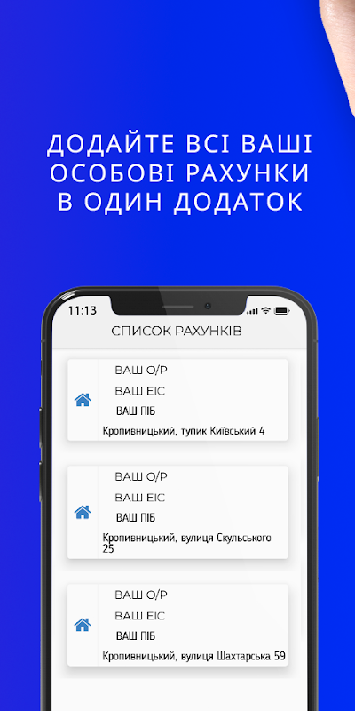 Dans notre application mobile, les abonnés Kirovogradgaz pourront utiliser la liste de fonctions suivante: