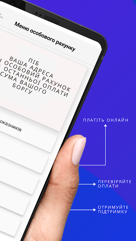 Dans notre application mobile, les abonnés Lvivvodokanal pourront utiliser la liste de fonctionnalités suivante: