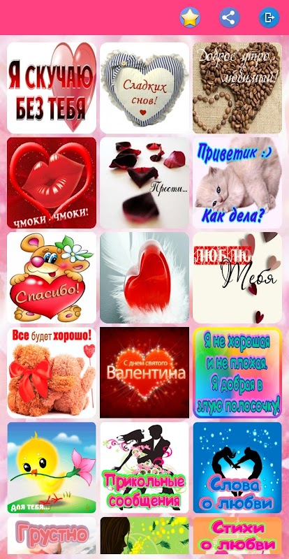 Cette application contient des images d'amour pour les filles bien-aimées - plus de 2000 images colorées pour diverses occasions et souhaits.