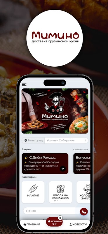 Bienvenue sur l'application Mimino : commandez facilement des plats géorgiens avec livraison à Oussolie-Sibirskoïe !