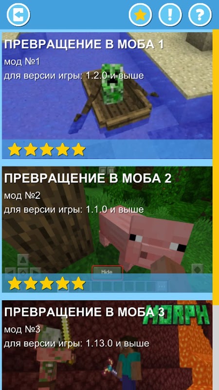 Le mod pour se transformer en mobs 1.12.2 est une application non officielle avec des ajouts. Cette application n'est en aucun cas affiliée aux développeurs du jeu original auquel ils sont destinés.