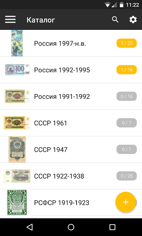 L'application contient déjà des catalogues de billets de banque russes et soviétiques. Cependant, la principale caractéristique est que tous les catalogues sont créés et mis à jour par les utilisateurs eux-mêmes. Vous pouvez vous-même :