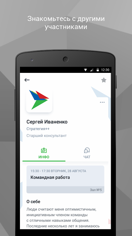 • общаться с участниками мероприятия через приложение;
