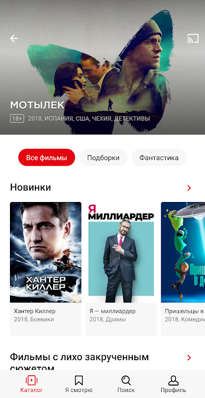 • Блокбастеры и премьеры с возможностью выбора звуковых дорожек, субтитров и качества видео.