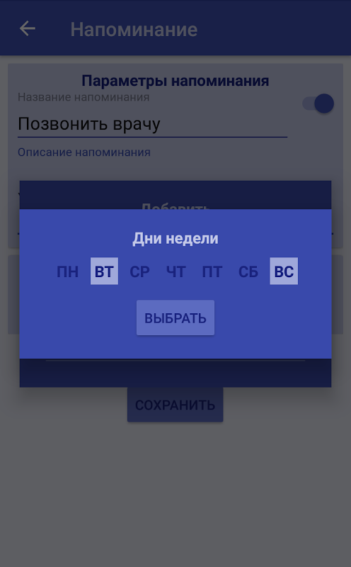 » Добавлена настройка уведомлений с периодичностью каждые N дней.