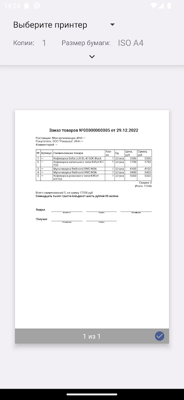 - Commerce à partir de roues (vente Van) - expédition de marchandises avec l'impression d'une facture et la création d'un bon de réception