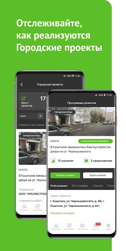 "Our Kyshtym" est une plate-forme à l'échelle de la ville pour la gestion conjointe de la ville avec des fonctions en ligne - des rapports en temps réel sur les événements et les incidents. Le projet a été créé selon les normes du programme national "Smart City".