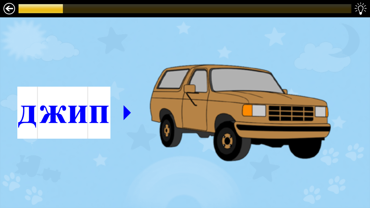 Pendant le jeu, l'enfant se familiarise avec les lettres de l'alphabet, ou plutôt, avec les sons - comme ils sont prononcés par des mots.