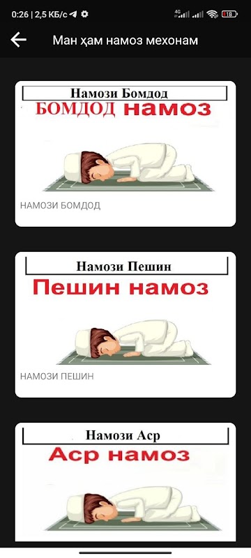 Dar barnoma malumotoi benihoyat ziyod oidi namoz, takhorat va gaira mavqud ast