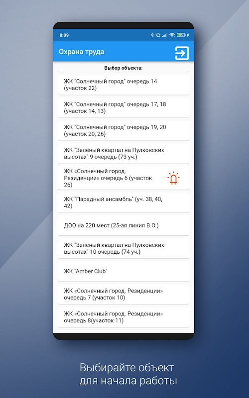 Актуальный список объектов — при переходе к выбору объекта автоматически загружается обновлённый список доступных для работы объектов.