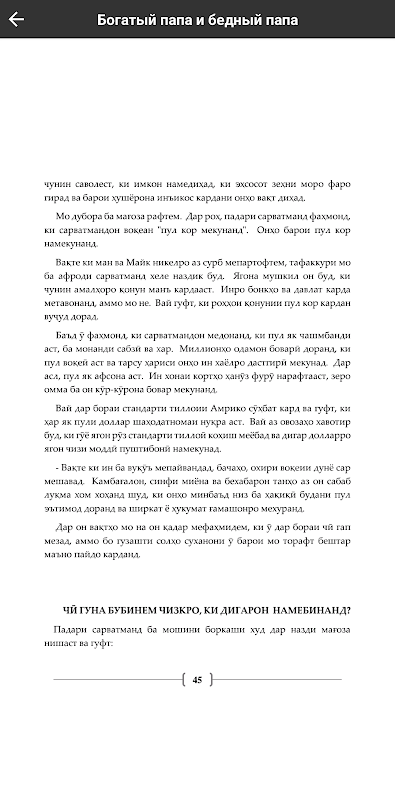 Les idées d'associations pour l'astre, les gens qui veulent manger, les hommes qui sont là pour le bal de fin d'année, les Balkans donnent à Tarzi Idora кунии молияи худ муҳим аст. Robert Kiyosaki du ravisseur militaire, qui « s'est déplacé » et « s'est embarqué » a envoyé une carte, il a été tué. Падари камбағал бо роҳи анъанави меравад - таҳсил мекунад, барои даромади устувор ва амният кор мекунад. Le père de Sarvatman, comme Tarafi Digar, s'est rendu compte qu'il était un homme d'affaires et qu'il avait un budget pour lui. стиқлолияти молияве талош мекунад.