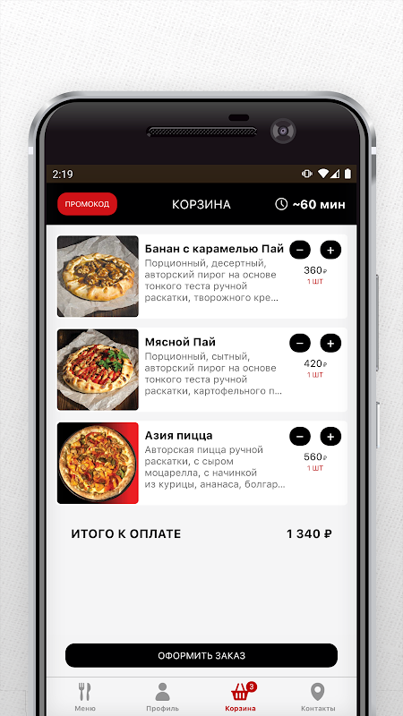 Une application mobile de la société Zapikanto est un réseau de pizzerias d'auteur, qui combine l'harmonie des goûts des plats épicés cuits au four et du café parfumé.