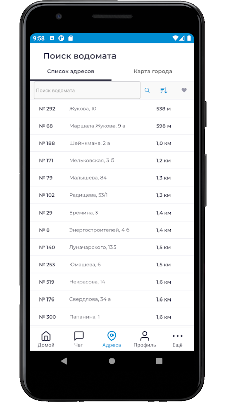 L'application officielle pour l'achat de la compagnie d'eau "Vodorobot"