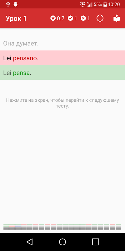 Le programme vous propose des expressions simples en russe sous l'une des trois formes (affirmative, négative, interrogative).