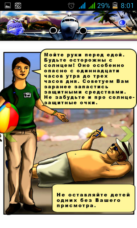 В приложении есть путеводитель (информация о стране, мини-словарь, религия, достопримечательности, природа, животные и много другое): Египет, Тайланд, Китай, Турция.