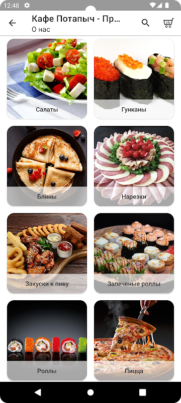 Téléchargez et commandez de délicieux plats ! Nous ne vous laisserons pas souffrir de la faim ! Potapych propose un large choix de délicieux petits pains, nouilles, pizzas juteuses et aromatiques ! Le menu comprend également des salades et des plats pour enfants. La commande est simple et pratique via l'application.