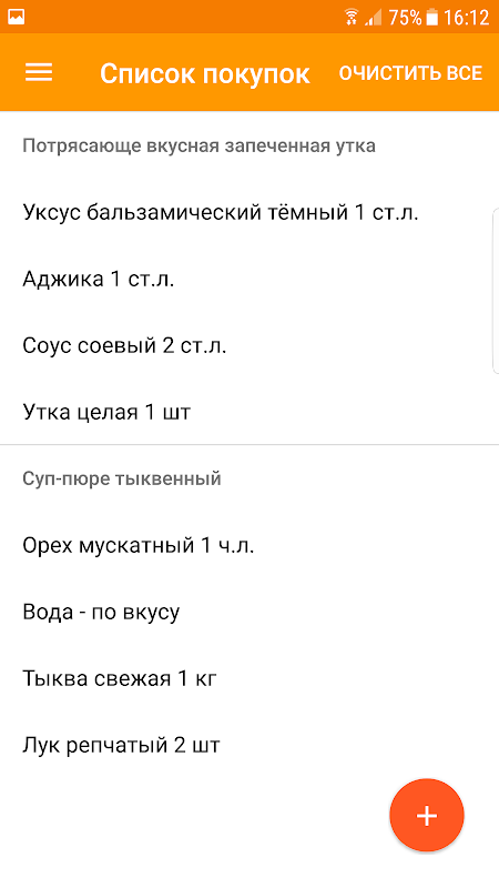 Здесь у вас есть возможность составить список покупок из ингредиентов рецепта.
