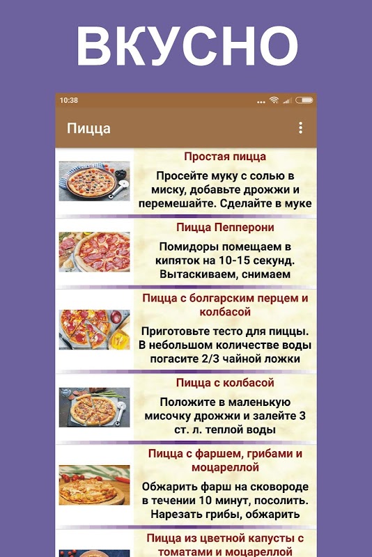 Простые рецепты пиццы помогут вам без особых проблем приготовить это всеми любимое блюдо. В приложении вы найдете вкусные рецепты итальянской или испанской пиццы на сковороде, в духовке и мультиварке. Так же вы узнаете, как приготовить тесто на пиццу, чтоб ваш кулинарный шедевр был самым вкусным. Все эти рецепты вы сможете просматривать без интернета в любое время.