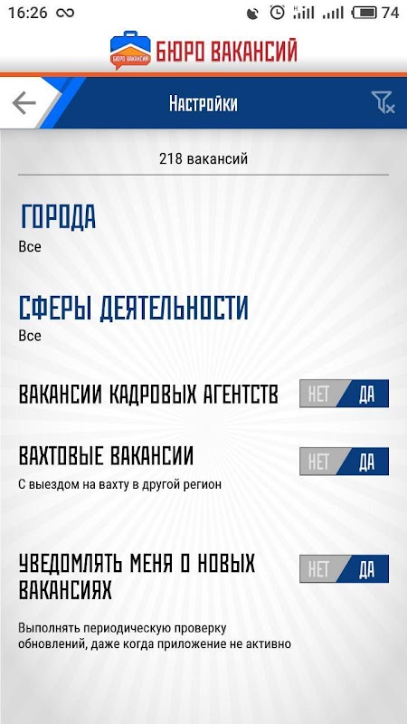 Tous les postes vacants sont divisés en offres d’employeurs directs et d’agences de recrutement. Les travaux qui vous intéressent peuvent être ajoutés aux favoris. De plus, dans chaque annonce, il y a un bouton "Appeler": en cliquant dessus, vous pouvez contacter l'employeur directement depuis l'application. L'historique complet des appels est disponible dans une section spéciale - vous pouvez voir immédiatement avec qui vous avez déjà communiqué. Et pendant que vos concurrents accèdent à l'ordinateur, vous avez déjà convenu avec l'employeur de l'entretien.