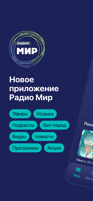 Мобильное приложение популярного в Беларуси радио «Мир» позволяет слушать прямые эфиры, смотреть online-трансляцию из студии, связаться с ведущими, быть в курсе важных новостей Беларуси и стран СНГ (экономика, политика, бизнес).