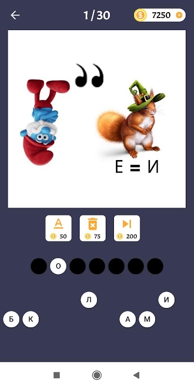 Увлекательное приложение Ребусы для всей семьи - отличный способ провести свободную минуту в любом месте: в транспорте, в очереди или сидя за столиком в кафе. К услугам пользователя подсказки, кнопка Помощь Друзей и деньги, используя которые можно показать одну из букв или перейти на следующий уровень.