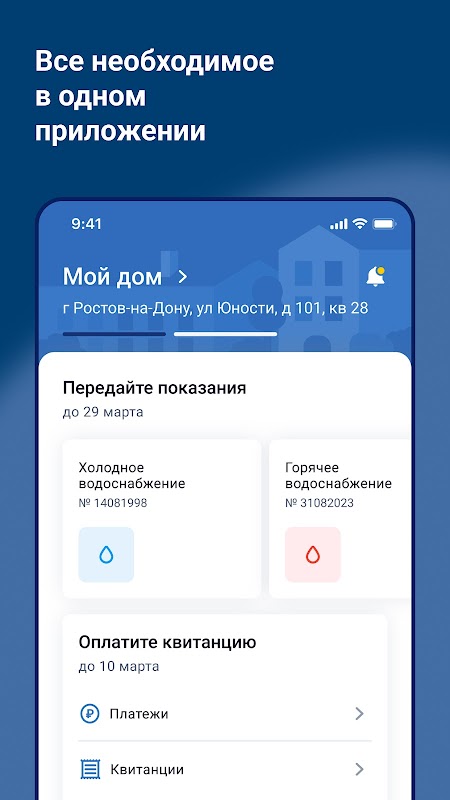 Compte personnel de JSC "Rostovvodokanal" pour les appareils mobiles.