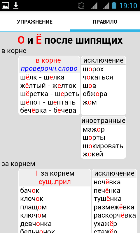 Dans cette annexe, toute orthographe avec une orthographe concurrente (par exemple, H - HH ou avec b après sifflement) est réduite à un exercice. Cela vous permet d'apprendre rapidement à distinguer les signes d'identification des règles d'orthographe , de consolider et de conserver ces compétences.