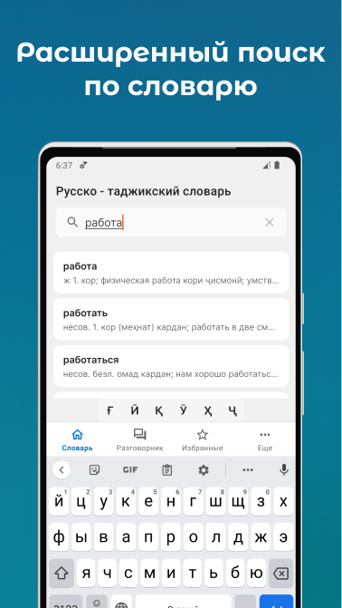 ✅ Recherche rapide de mots. L'application dispose d'une fonction de recherche qui vous permet de trouver rapidement le mot ou la phrase souhaitée en russe ou en tadjik.