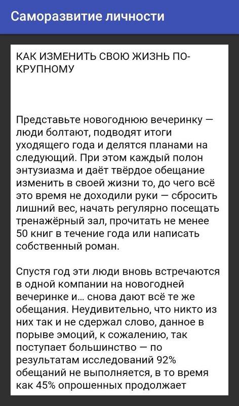 Все правила в этой жизни просты – нет ничего невозможного! Только вы определяете свои рамки. Если хорошенько захотеть, то любые, даже самые сокровенные мечты, превратятся в самую что ни на есть реальность. Для этого вполне достаточно регулярно трудиться и яростно хотеть что-нибудь изменить в своем житие. В нашем новом приложении вы узнаете обо всем этом! В нем предлагается ознакомиться с такими насущными аспектами саморазвития, как постепенный рост, изменение себя и своих привычек. Вот лишь некоторые темы:
