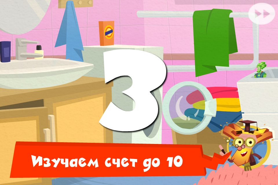 Крошечные существа – фиксики – появляются в неожиданных уголках комнаты и сразу исчезают. Нужно успеть запомнить, сколько раз выглянет фиксик – а затем выбрать правильный ответ из нескольких вариантов. Игра помогает тренировать наблюдательность, внимание и память – а малыши с ее помощью смогут изучить цифры и подготовиться к школе!