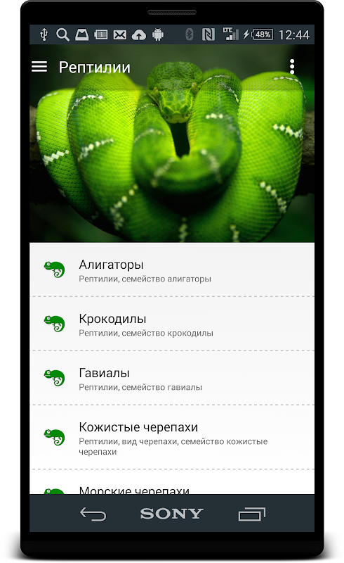 В данном справочнике содержится большое количество животных, птиц и рептилий.
