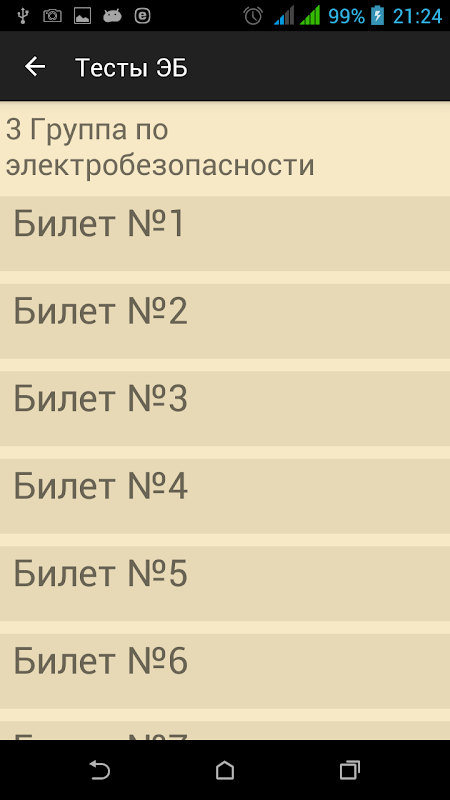 Тесты доступны на 2, 3, 4, 5 группы по электробезопасности. Обращаю ваше внимание что в бесплатной версии приложения будут доступны по 7 билетов в каждой группе кроме 2. Во второй группе будут доступны все 11 билетов.