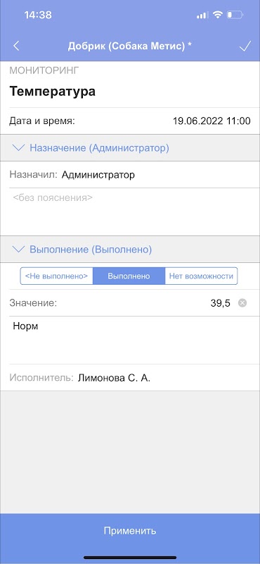 Приложение позволяет просматривать и выполнять назначения пациентам стационара.