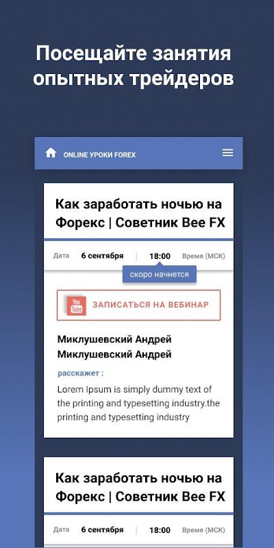 - Inscrivez-vous à un webinaire où le trader répondra à toutes vos questions sur le trading sur les marchés financiers