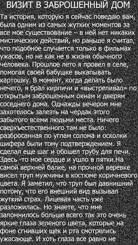 Наше приложение Страшные Истории великолепно подойдет всем, кто любит страшные истории на ночь или страшные истории без интернета.