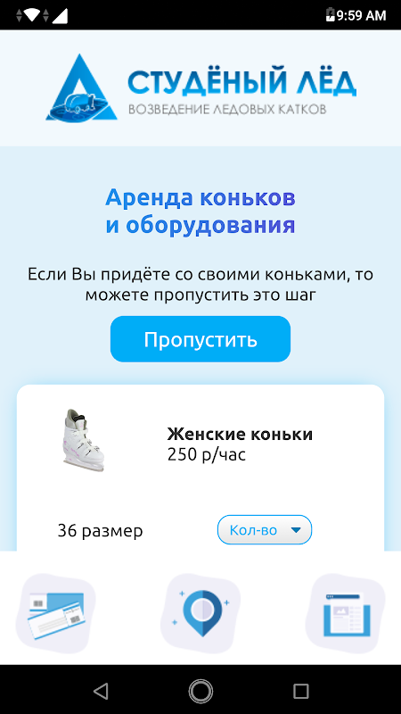 Réservation d'une patinoire et du matériel de glace