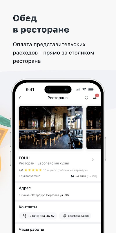 - Restaurants : payez instantanément vos frais de représentation depuis le compte de l'entreprise, directement à la table du restaurant