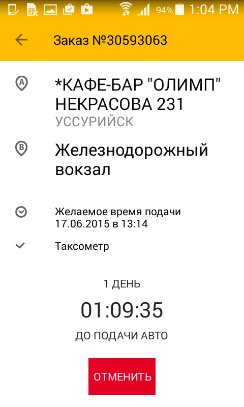 - Звуковой сигнал проинформирует вас о прибытии такси;