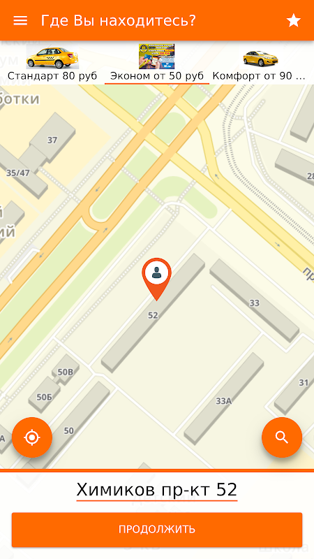 • Возможность вызвать такси разного класса (Эконом, Комфорт, Бизнес).