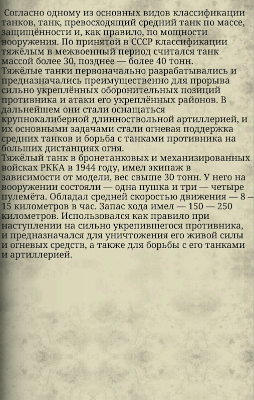 Вторая мировая война подстегнула прогресс в танкостроении. Всего за шесть лет танки совершили больший рывок, чем за предыдущие двадцать. Значительная часть танков обзавелась противоснарядным бронированием, мощными пушками калибром до 152 мм (у КВ-2), в конце войны появились первые ночные — инфракрасные — прицелы (хотя опыты по их постановке на танк проводились в СССР ещё до войны), радиофикация танков стала считаться необходимой. Тактика применения танков тоже достигла высокой степени совершенства — в первый период войны (1939—1941 гг.) германские военачальники продемонстрировали всему миру, как применение танковых соединений позволяет провести операции по оперативному и стратегическому окружению и последующему разгрому крупных войсковых группировок противника и быстро выиграть войну (т. н. «блицкриг»).