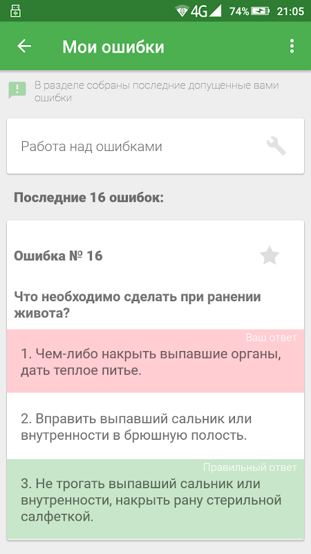 - режим "Обучение", который позволяет поэтапно изучить все вопросы выбранной категории