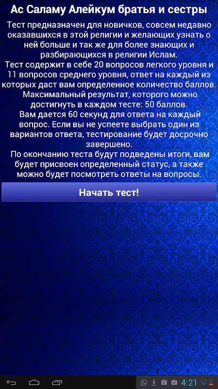 Description: Le test contient 75 questions au total et trois catégories: 1 - Coran 2 - Sirah (biographie), et