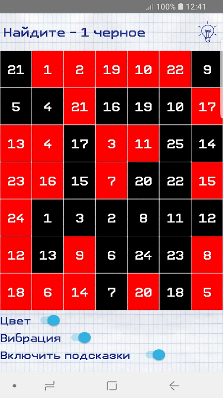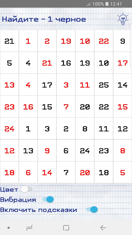 Перед Вами появится поле с 13 чёрными числами и 12 красными. Тест проходит в три этапа: