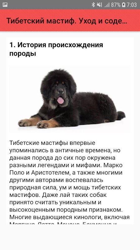 Informations Тибетский мастиф. Уход и содержание APK