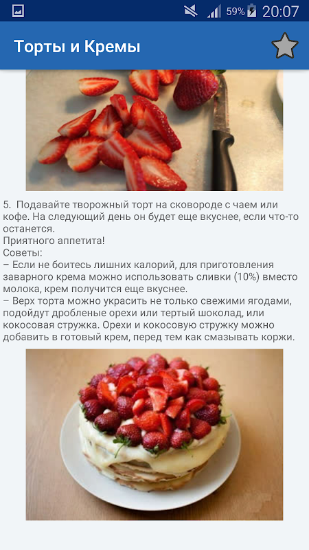 Кстати, наши опыты и эксперименты показали, что в некоторых рецептах, для усиления вкуса и получения особого эффекта, можно импровизировать с разными кремами. Именно по этой причине, мы решили подготовить приложение, в котором наравне с отличными рецептами тортов, будут отдельно представлены рецепты кремов. Если вы решили приготовить пирожные или просто порадовать себя сладким, эта программа будет как нельзя кстати.