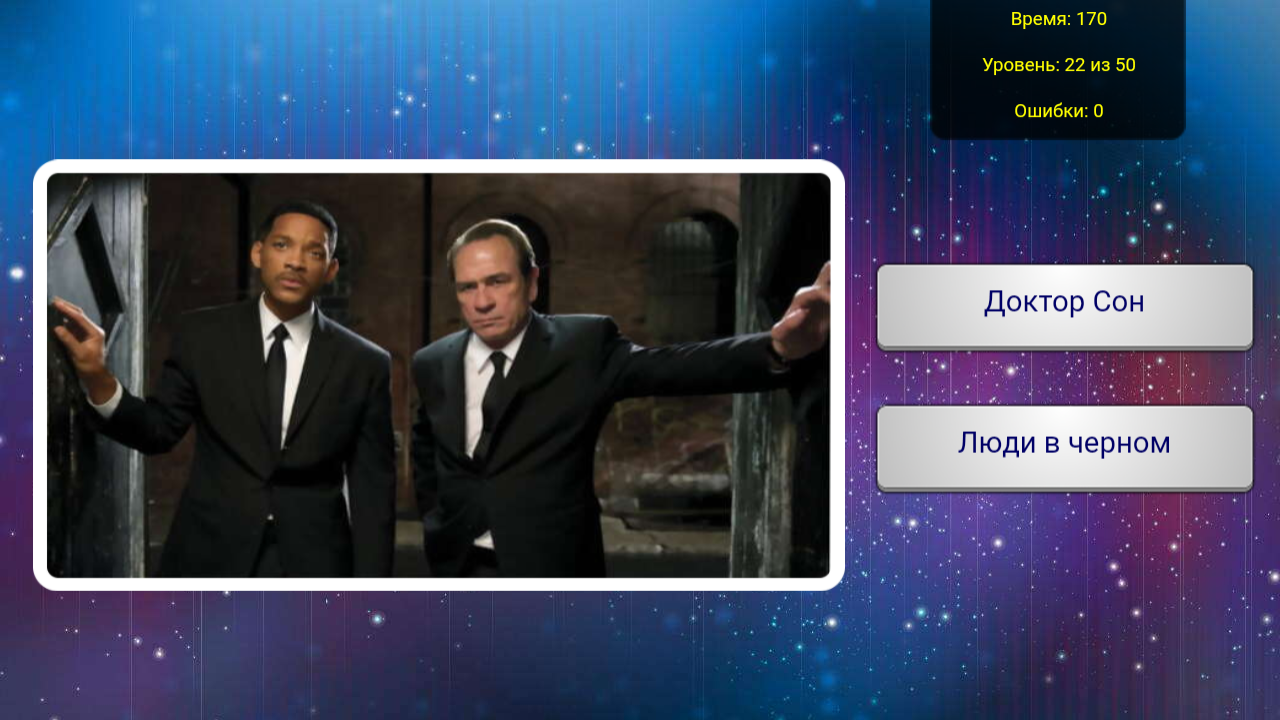 Вам будет дана 1 картинка из фильма вы должны будете выбрать 1 верный вариант из 2 предложенных. За неверный ответ будет начисляться время 5 секунд к вашему таймеру, поэтому у вас будет стимул чтобы не ошибиться и пройти все уровни без ошибочно, после вы можете просмотреть свой рейтинги и узнать вашу оценку о знании киноленты. Играйте еще раз, чтобы увеличить количество сыгранных игр в рейтинге и выйти на новый уровень эрудиции в знаниях различных фильмов!