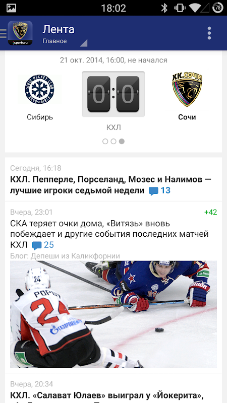 HC Sochi de Sports.ru pour Android est une nouvelle application sur le club de hockey "Sochi", qui joue dans la Ligue continentale de hockey (KHL), permet au fan d'être toujours au courant de ce qui se passe dans son équipe préférée. L'application comprend :