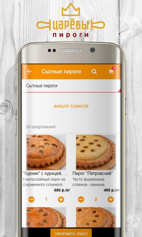 Приложение «ЦАРЕВЫ ПИРОГИ» - это отличная возможность совершать онлайн заказ пирогов, блинов или горячих блюд. Доставим Ваш заказ в любую точку города!